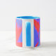 This pretty mug features a beautiful photograph of a tulip. The photograph has been artificially coloured resulting in a riot of colour. The centre of the flower glows white-hot while the surrounding petals are a mixture of reds, blues and purples. The result is an incredible image. The design is shown on a blue and white ringer style coffee mug, but is also available on other colours and styles of mugs. This cool coffee mug would make a great gift.