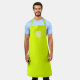 All-over print aprons in fluorescent yellow solid colour background and a cover logo . Personalise it now . Modern and trendy design by Alma Wad .It comes in three different sizes with straps in matching colours .