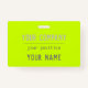 Fluorescent yellow -#ccff00 - solid colour background and bold lettering in grey .Bright and trendy design by Alma Wad .Personalise this horizontal plastic badge now !