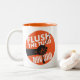 Add a pop of color to your morning coffee! The outside of the mug features the Flush the T*** graphic with a vividly coordinating interior color. Give this fun gift to a friend, or add to your mug collection.