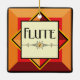 Flute text with a decorative line sporting a music note in a colourful block of warm colours is a unique gift design for woodwind musicians, music teachers and students in concert and marching band.