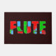 Flute text in colourful blocks surrounded by a hatch pattern is a unique gift design for woodwind musicians, music teachers and students in concert and marching band.
