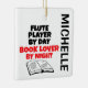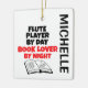 This is a unique ornament featuring the quote "Flute Player by Day Book Lover by Night", perfect for any flute player that loves to read.