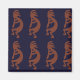Flute Playing Kokopelli Figure - Blue on Rust Red Background