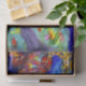Colourful ,whimsical and vibrant watercolor painting with bright blue,green,gold yellow,pink,fuchsia colours inspired from Carnival of Venice and Commedia dell'Arte. An expressive flute player in the night , moon light and a blue cat.This cool and artistic design is also a beautiful gift for special occasions ,birthdays ,weddings,Christmas, holiday,mardi gras ,carnival season.