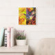 Colourful ,whimsical and vibrant watercolor painting in bright red,brown,yellow,orange,green colours with gold and silver foil .