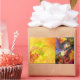 Colourful ,whimsical and vibrant watercolor painting in bright red,brown,yellow,orange,green colours with gold and silver foil .