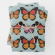 This hand-illustrated butterfly pattern captures the gentle beauty of nature in flight, with bold monarch wings and lavender accents fluttering across a serene blue backdrop. The contrast of bright orange, pink, and soft teal gives it a fresh yet nostalgic charm—like a storybook meadow on a breezy day.