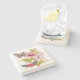 The coasters are gorgeous, a quality feel and heavy weight. They look like a precious archeological find. A rustic stone juxtaposed with a modern floral black and white print. I like the way the print goes slightly imperfect on the cut stone edges giving them a kind-of natural beauty.
