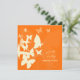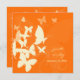 The butterflies, fluttering by, in cream silhouettes on orange background and faded ornamental leaves embellished with swirls and curls in cream on blue. For fanciful occasion.. wedding, anniversary, open house, invitation for an auction!! Copyright © 2010 PixDezines.com and PixD For more colours >>