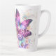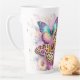 This enchanting latte mug features a vibrant and whimsical design of butterflies and flowers. The butterflies are adorned with a mix of colourful patterns, including leopard spots and gradient hues, creating a lively and eye-catching effect. The background is filled with soft, pastel flowers that complement the vivid butterfly wings, making this mug a delightful and charming addition to any coffee lover's collection. Perfect for adding a touch of nature-inspired beauty to your morning routine.