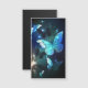 Fabulous, glowing, blue and yellow, night butterfly on dark background.