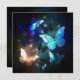 Fabulous, glowing, blue and yellow, night butterfly on dark background.