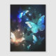 Fabulous, glowing, blue and yellow, night butterfly on dark background.