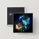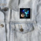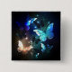 Fabulous, glowing, blue and yellow, night butterfly on dark background.