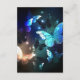 Fabulous, glowing, blue and yellow, night butterfly on dark background.