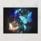 Fabulous, glowing, blue and yellow, night butterfly on dark background.