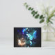 Fabulous, glowing, blue and yellow, night butterfly on dark background.