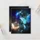 Fabulous, glowing, blue and yellow, night butterfly on dark background.