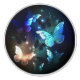 Fabulous, glowing, blue and yellow, night butterfly on dark background.