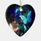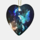 Fabulous, glowing, blue and yellow, night butterfly on dark background.