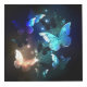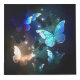 Fabulous, glowing, blue and yellow, night butterfly on dark background.