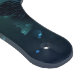 Fabulous, glowing, blue and yellow, night butterfly on dark background.