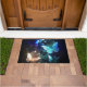 Fabulous, glowing, blue and yellow, night butterfly on dark background.