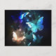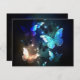 Fabulous, glowing, blue and yellow, night butterfly on dark background.