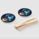 Fabulous, glowing, blue and yellow, night butterfly on dark background.