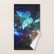 Fabulous, glowing, blue and yellow, night butterfly on dark background.