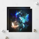 Fabulous, glowing, blue and yellow, night butterfly on dark background.