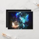 Fabulous, glowing, blue and yellow, night butterfly on dark background.