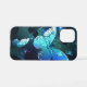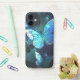 Fabulous, glowing, blue and yellow, night butterfly on dark background.