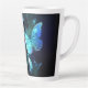 Fabulous, glowing, blue and yellow, night butterfly on dark background.