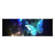 Fabulous, glowing, blue and yellow, night butterfly on dark background.