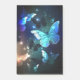 Fabulous, glowing, blue and yellow, night butterfly on dark background.