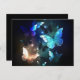 Fabulous, glowing, blue and yellow, night butterfly on dark background.