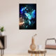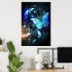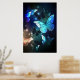 Fabulous, glowing, blue and yellow, night butterfly on dark background.