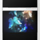 Fabulous, glowing, blue and yellow, night butterfly on dark background.