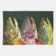 This design features three big trout - the Brook Trout, salvelinus fontinalis; the Rainbow Trout, oncorhynchus mykiss; and, the Brown Trout, salmo trutta. The art for each of these three fish is from an original watercolor paintings by Mr. Trout Whiskers. A great item for anyone who loves fishing for these beauties - whether fly fishing, bait fishing or lure fishing. Makes a unique gift for a man or for a woman for Christmas, birthday, Mother's Day, Father's Day, holidays, ANY day! This same design is available on hundreds of other items. And, each individual trout is also available on thousands of other items.