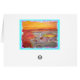 shows fly fisherman tying a fly on with the sun setting and rainbow trout chasing a fly from original art ! also "wishing you a fly fishing sunset" slogan on the inside