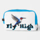 Soar in style with this vibrant backpack featuring a stunning hummingbird in mid-flight and the inspiring words 'Fly High'. A perfect blend of beauty and motivation for everyday adventures.