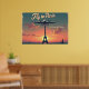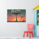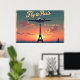 This 36"x24" “Fly to Paris” poster is a nostalgic tribute to the golden era of travel. Styled after mid-century airline advertisements, it transports viewers to a dreamy 1950s Paris through the soft glow of dusk over the Eiffel Tower. The warm gradient sky—blushing peach to deep twilight blue—sets the stage for a vintage passenger plane soaring overhead, reminiscent of the iconic Lockheed Constellation.