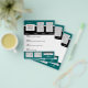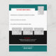If you're looking to create your own flyer for promotional and marketing purposes and are looking for a fully customisable template, then this is perfect for your business needs. To ensure that the customisable fields are in the correct sequence, select the "customise it" button on this page. This double sided template has fields which enable you to type in your own wording and upload your own unique corporate logo and/or images. FRONT: The top third of the brochure has a horizontal blue green (teal), thin white and broad black band, the middle third is stark white and the bottom band is the same teal colour as the top. There is provision for you to upload 2 (two) photos to the top band and 2 (two) to the bottom band. Apart from your businesses operational details, the bottom right corner, which has a black and silver striped image with highlights your businesses name, has fields below it for you to include your business, email and website address. BACK: The top quarter has a blue green horizontal band, the middle quarter is stark white and the bottom half has a broad black, thin white and teal coloured horizontal stripe. The top right corner allows for 1 photo to be uploaded and half way down, 3 (three) image templates are set side by side. The top half of the former images are against the white background and the bottom half against the black background . PAPER: A great paper at an affordable price. This 80lb text-weight, matte white paper is perfect for flyers, leaflets, brochures and mailings. Our value paper contains 50% recycled content. SIZE: 4.5" x 5.6" CUSTOMIZE IT: Change the style, colour and size of the font. Re-size and place the photo fields where required. Delete or add additional photos and wording. BLUE GREEN BORDER: Change to any colour of your choice.