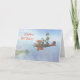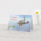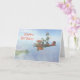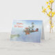 A birthday card with a skeleton flying ace piloting a small biplane.