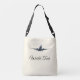 Flying around the world on ivory Crossbody Bag. Text can be personalised. Carry your flying dream with you. More than just a bag!