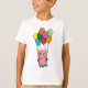 Featuring a digital illustration of pink pig using a bunch of multicoloured balloons to fly high into the cloudy blue sky.