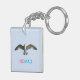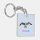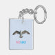 Flying seagull bird and bicolor calligraphy on light blue Keychain.
