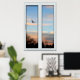 Enhance the decor of any room with this picturesque poster. The artwork creates the illusion of having a window on your wall. This realistic view of a bird flying at sunset gives the illusion of looking out of the window. The original artwork is 24" x 36" which is the average poster size and was created at high resolution (300 dpi) so it prints out beautifully.
